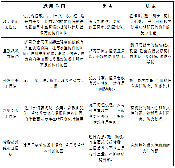 針對(duì)構(gòu)件承載力不足,目前有多種成熟的加固方法可以選擇,下面由小編介紹幾種常規(guī)的構(gòu)件加固方法。